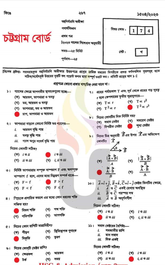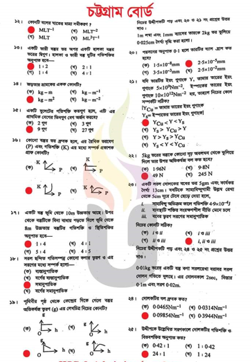 চট্টগ্রাম বোর্ড এইচএসসি পদার্থবিজ্ঞান ১ম পত্র এমসিকিউ এবং লিখিত সমাধান ২০২৪